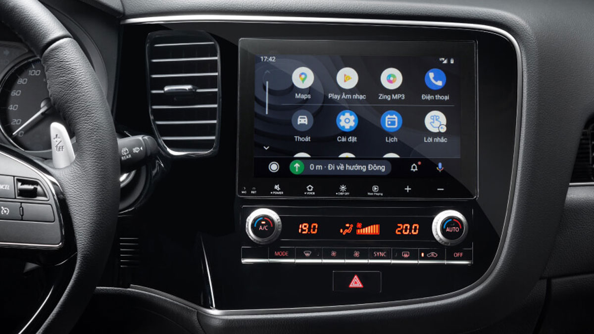 Outlander sở hữu màn hình cảm ứng kích thước 8 inch cho phép kết nối với hệ thống giải trí Android Auto và Apple CarPlay và được tích hợp camera lùi. (Hình ảnh có thể khác với thực tế)