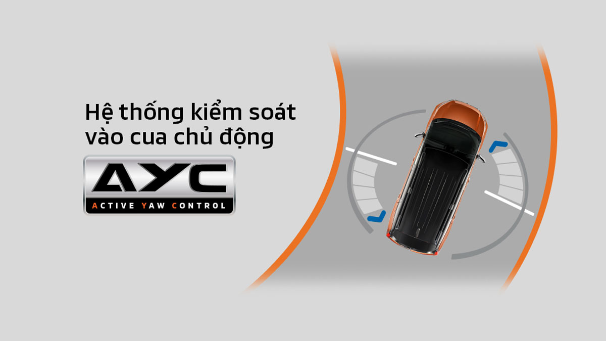 Hệ thống AYC kiểm soát và tác động lực phanh lên từng bánh xe khi đánh lái gấp hoặc khi đánh lái trên bề mặt trơn trượt giúp xe vận hành ổn định, chính xác và an toàn hơn, đặc biệt khi vào cua hay khi chuyển hướng trên những cung đường ngoằn ngoèo, trời mưa trơn trượt. AYC kiểm soát quỹ đạo di chuyển của xe giúp xe có bán kính quay xe nhỏ hơn, thao tác đánh lái ít hơn khi vào cua và thoát cua trên bề mặt đường trơn ướt hay di chuyển tốc độ cao, giúp người lái vững tâm khi di chuyển. Không những thế, AYC giúp tăng sự thoải mái cho các hành khách ngồi trên xe khi xe di chuyển vào cua và tăng độ an toàn, giảm ảnh hưởng lên người ngồi và giữ thân xe ổn định hơn khi vào cua nhanh.