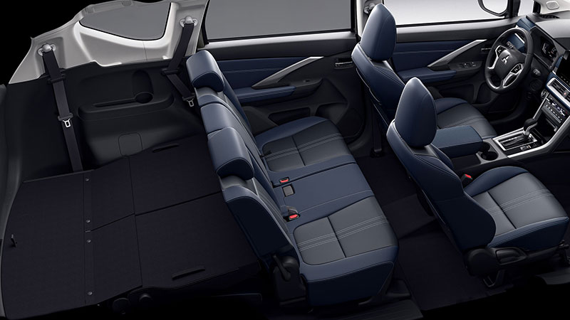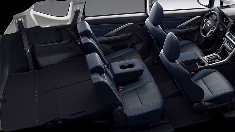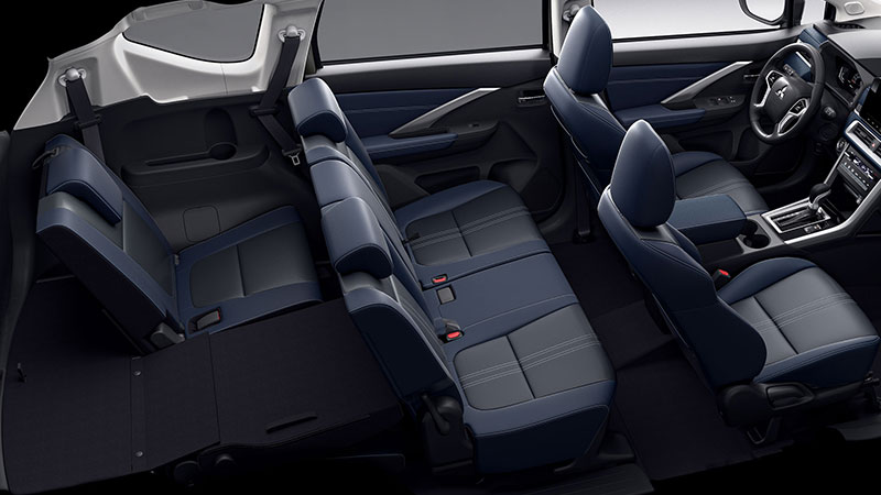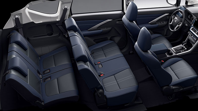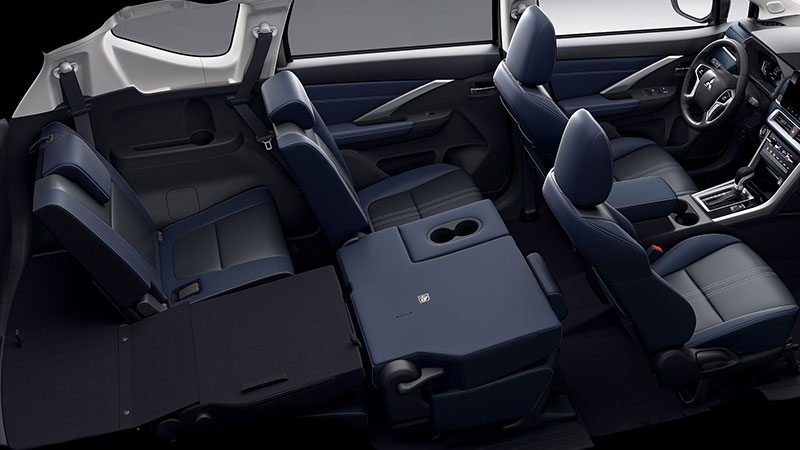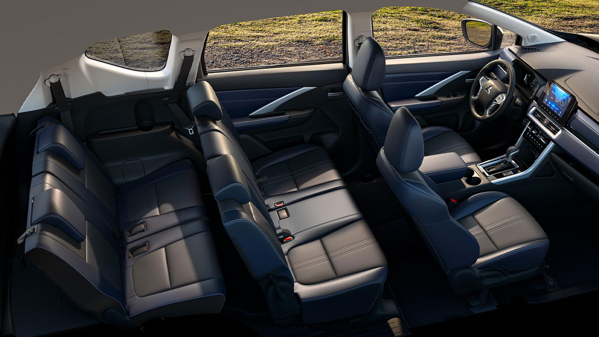 Nội thất với bề mặt táp lô được thiết kế theo phương ngang Horizontal Axis, không gian nội thất của Xpander Cross 2023 vẫn giữ được sự tinh tế, rộng rãi, sang trọng vượt trội với 3 hàng ghế nhằm tối đa hóa sự thoải mái cho cả gia đình.