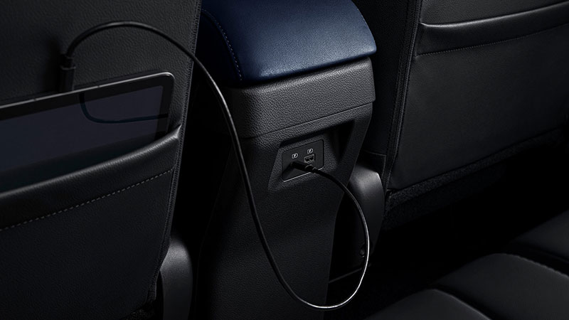 Cổng sạc type – C hàng ghế 2: Bệ tỳ tay được trang bị 2 cổng sạc USB ở phía sau cho hàng ghế 2: 01 cổng USB Type-A và 01 cổng USB Type-C